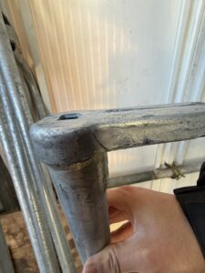 清掃が終わると、次は一番重要な「検品」の工程です。足場材は長年使っていると、目に見えないダメージが蓄積されることがあります。